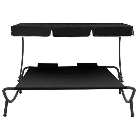 Sonnenliege mit Sonnendach und Kissen Schwarz