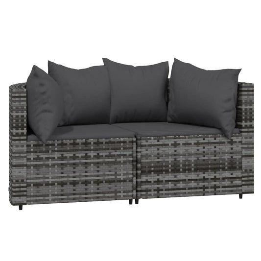 Vrtne sofe s jastucima od 2 komada sivog poliratana