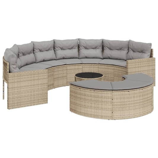 Gartensofa mit Tisch und Kissen Rund Beige Poly-Rattan