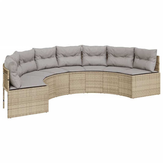 Gartensofa mit Tisch und Kissen Halbrund Beige Poly-Rattan