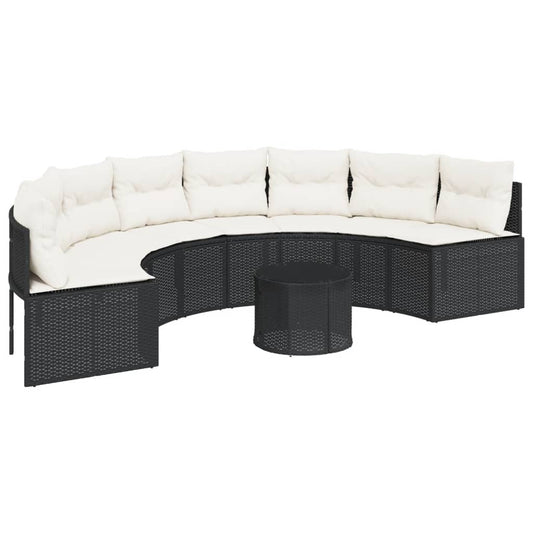 Gartensofa mit Tisch und Kissen Halbrund Schwarz Poly-Rattan