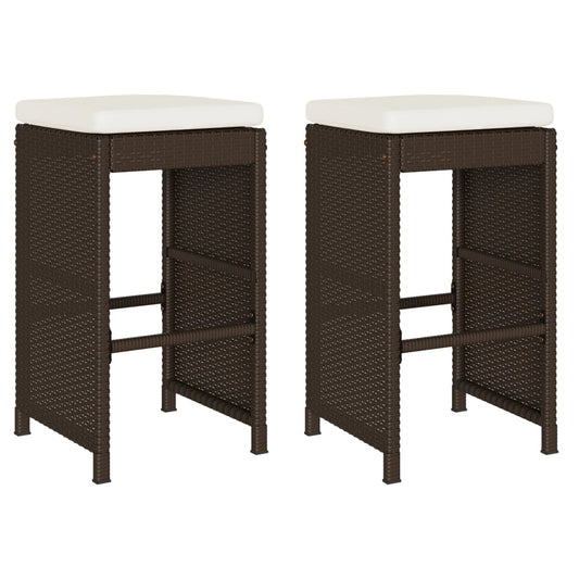 Garten-Barhocker mit Kissen 2 Stk. Braun Poly Rattan