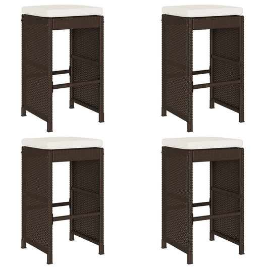 Garten-Barhocker mit Kissen 4 Stk. Braun Poly Rattan