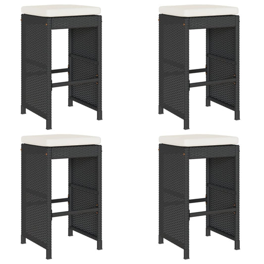 Garten-Barhocker mit Kissen 4 Stk. Schwarz Poly Rattan