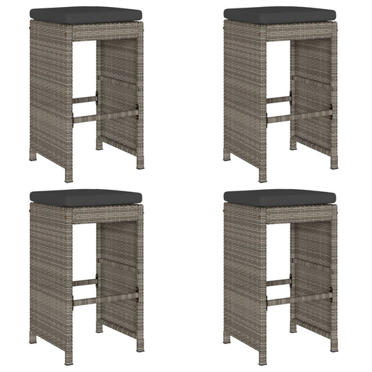 Garten-Barhocker mit Kissen 4 Stk. Grau Poly Rattan