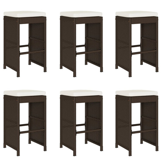 Garten-Barhocker mit Kissen 6 Stk. Braun Poly Rattan