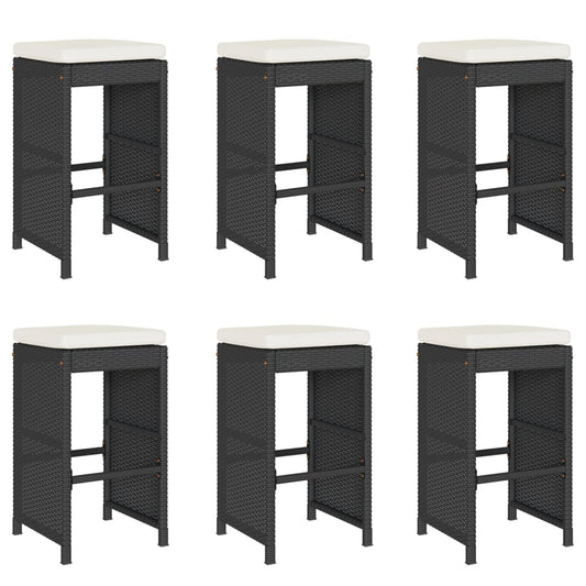 Garten-Barhocker mit Kissen 6 Stk. Schwarz Poly Rattan