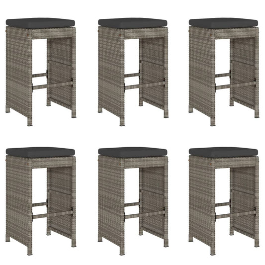 Garten-Barhocker mit Kissen 6 Stk. Grau Poly Rattan