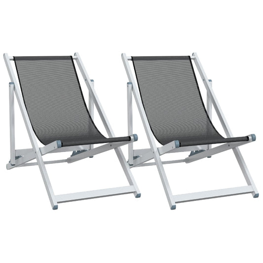Strandstühle 2 Stk. Klappbar Grau Aluminium und Textilene