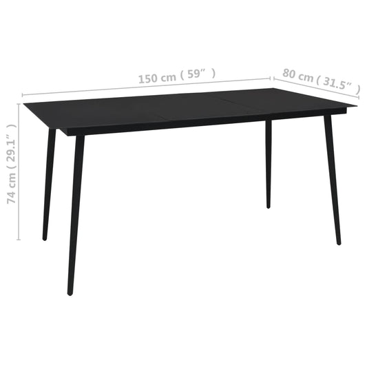 Garten-Esstisch Schwarz 150x80x74 cm Stahl und Glas