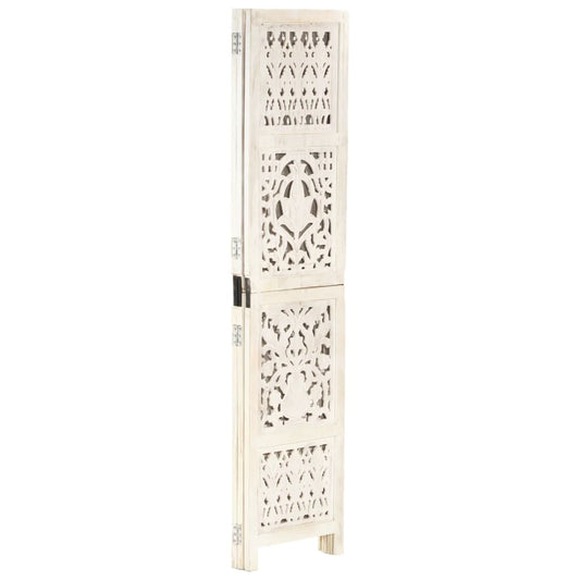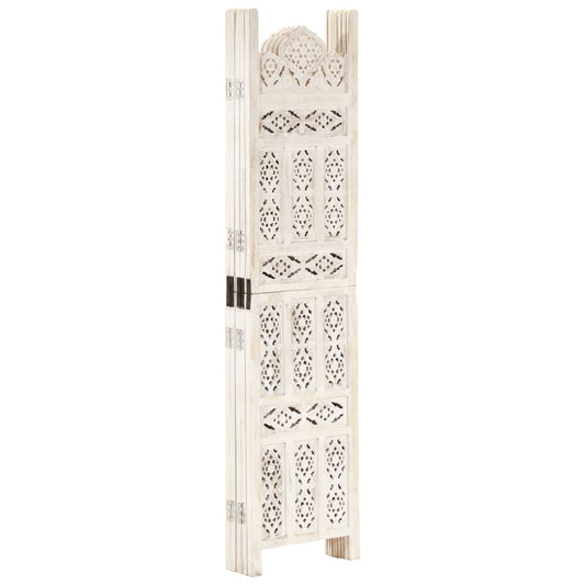 5tlg. Raumteiler Handgeschnitzt Weiß 200×165cm Mango Massivholz