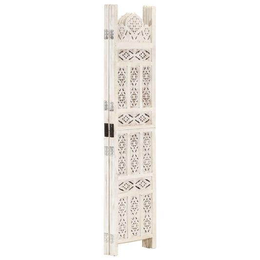 4 komada Sobna pregrada ručno izrezbarena bijela 160×165 cm puno drvo mango