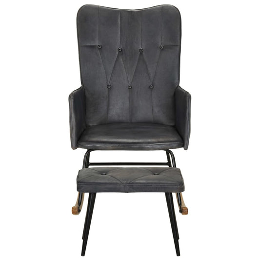 RasprodanoSchaukelstuhl mit Hocker Grau Echtleder
