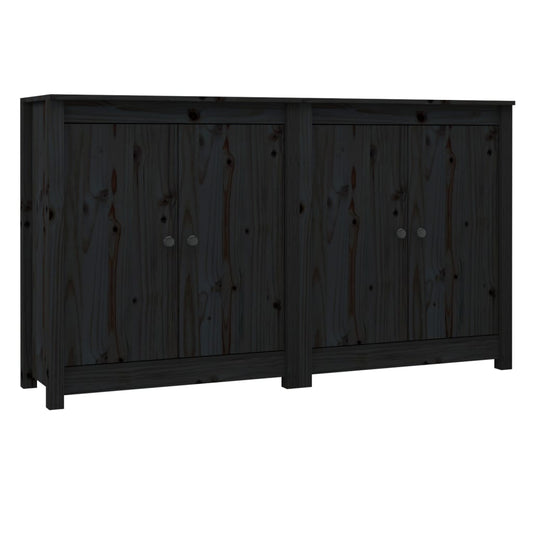 Sideboards 2 Stk. Schwarz 70x35x80 cm Massivholz Kiefer