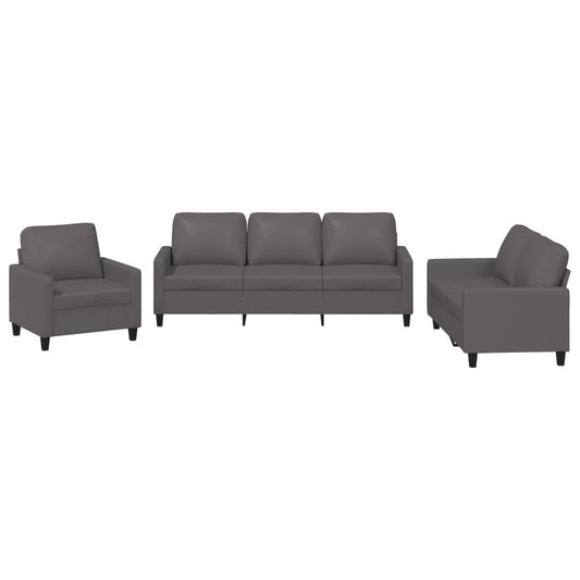 3-tlg. Sofagarnitur mit Kissen Grau Kunstleder