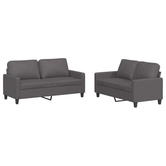 2-tlg. Sofagarnitur mit Kissen Grau Kunstleder