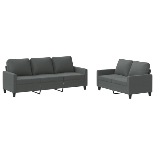 2-tlg. Sofagarnitur mit Kissen Dunkelgrau Stoff