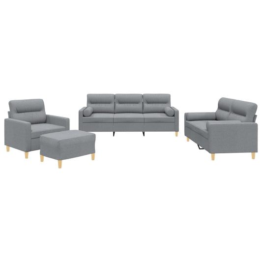 4-tlg. Sofagarnitur mit Kissen Hellgrau Stoff