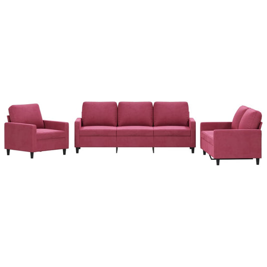 Rasprodano3-tlg. Sofagarnitur mit Kissen Weinrot Samt