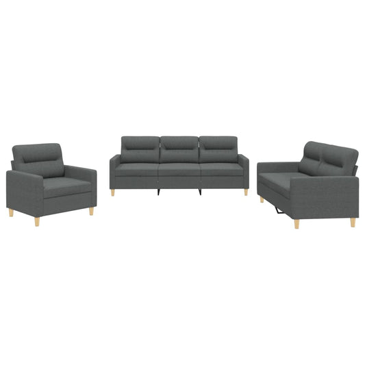 3-tlg. Sofagarnitur mit Kissen Dunkelgrau Stoff