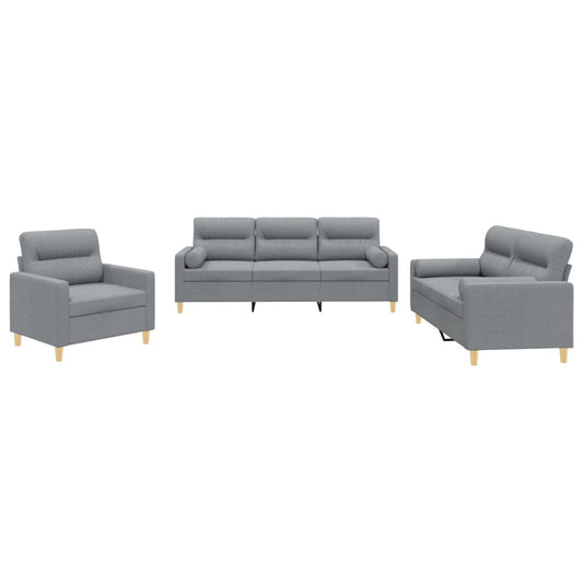 3-tlg. Sofagarnitur mit Kissen Hellgrau Stoff