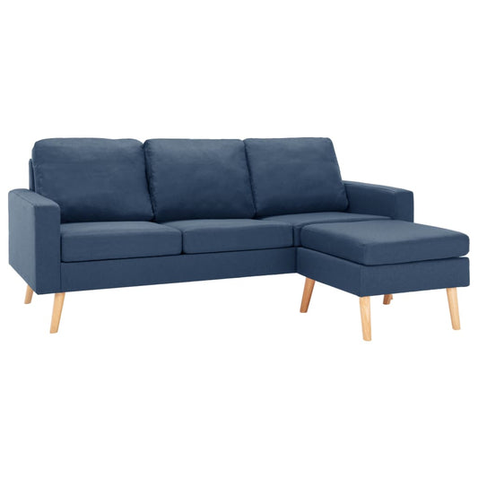 Rasprodano3-Sitzer-Sofa mit Hocker Blau Stoff