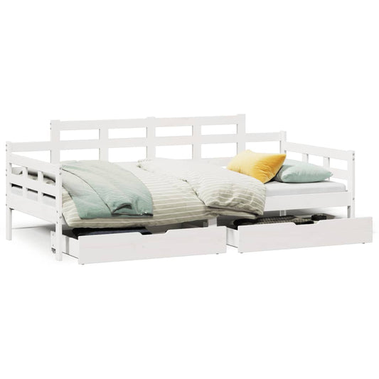 Tagesbett mit Schubladen Weiß 90x200 cm Kiefernholz