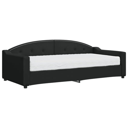 Tagesbett mit Matratze Schwarz 90x200 cm Stoff