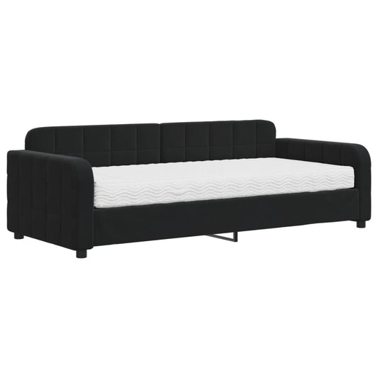 Tagesbett mit Matratze Schwarz 90x200 cm Samt