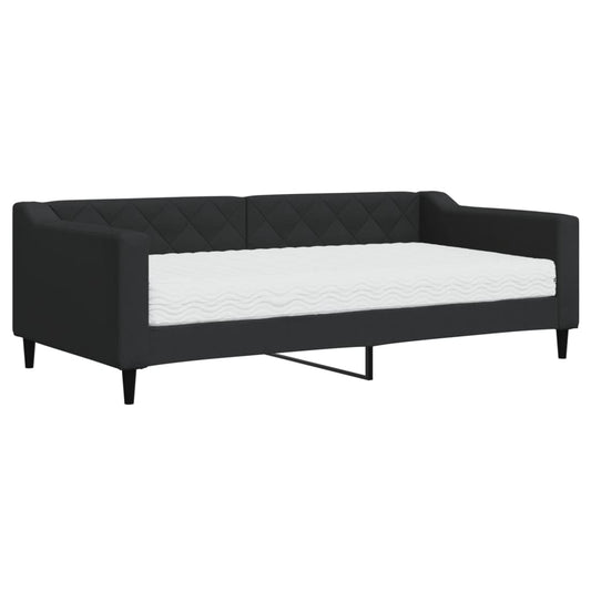 Tagesbett mit Matratze Schwarz 90x190 cm Stoff