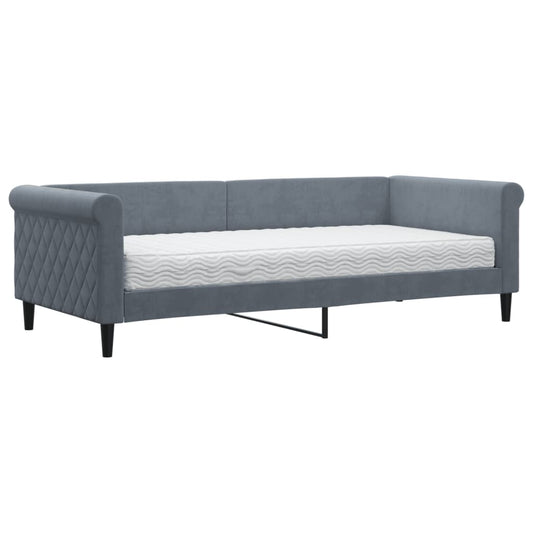 Tagesbett mit Matratze Dunkelgrau 90x200 cm Samt