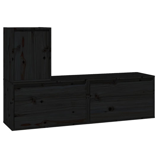 RasprodanoTV-Schränke 3 Stk. Schwarz Massivholz Kiefer