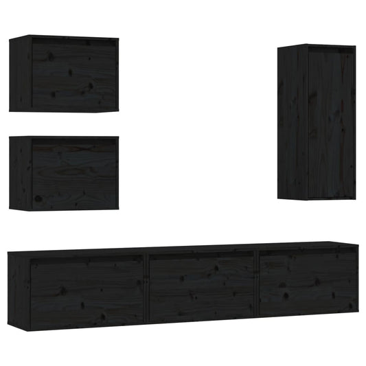 RasprodanoTV-Schränke 6 Stk. Schwarz Massivholz Kiefer