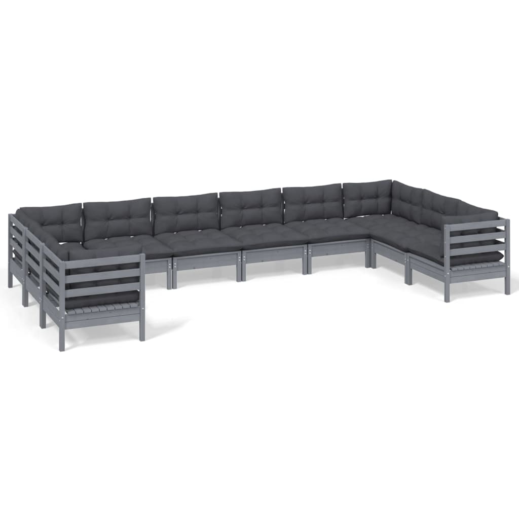 10 kom. Vrtna garnitura za sjedenje s jastucima u sivom borovom drvu