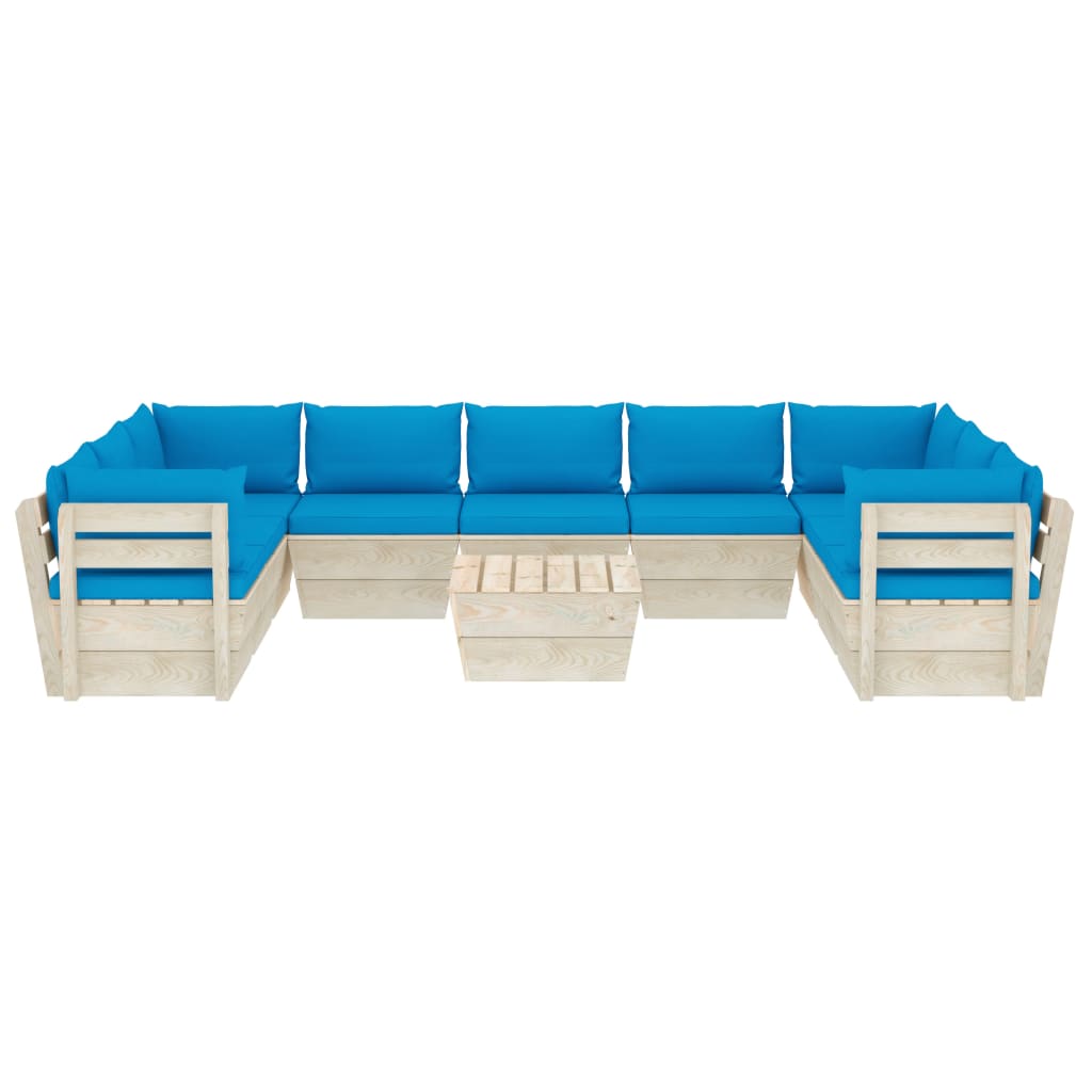10 kom. Vrtna garnitura za sjedenje od paleta s jastucima od smrekovog drveta