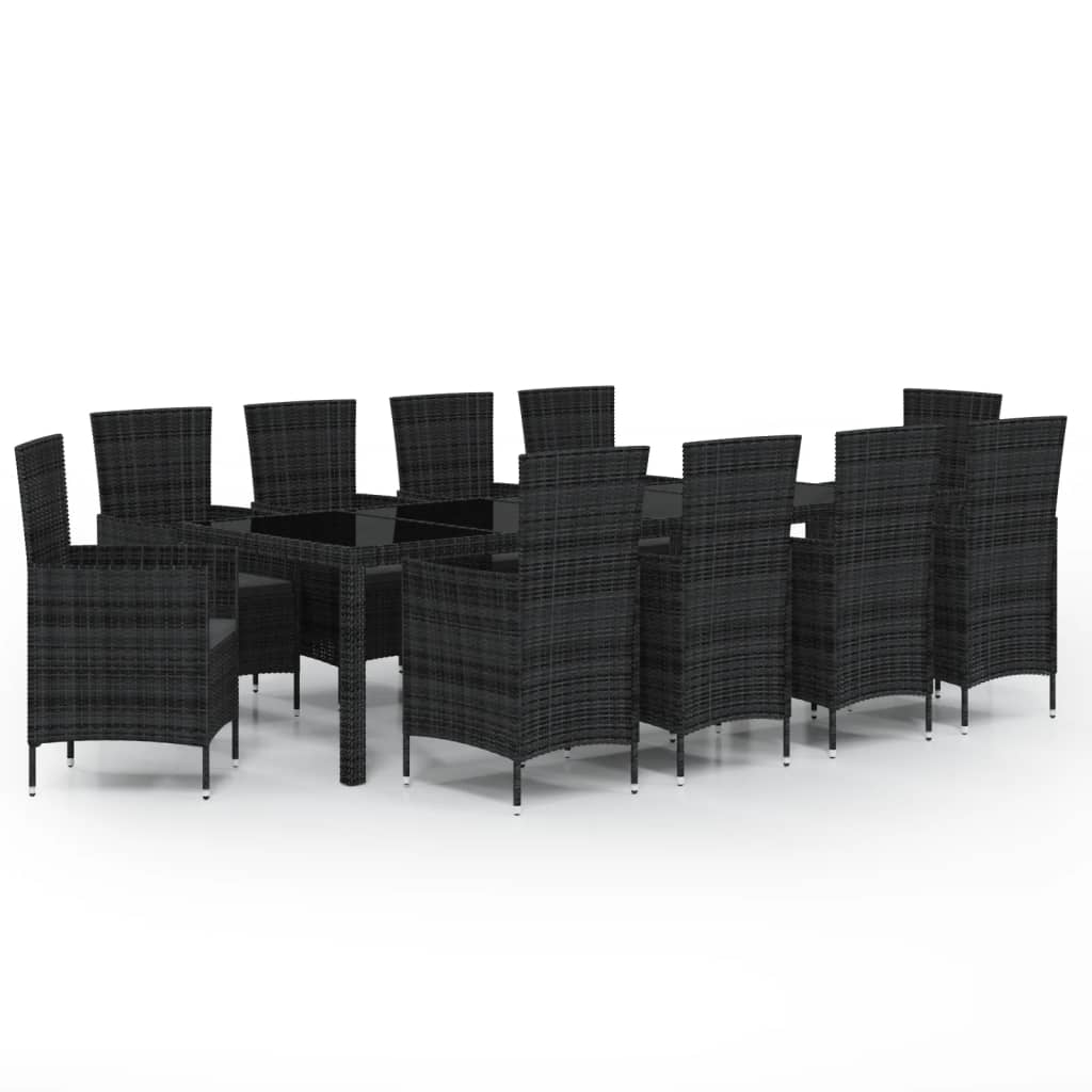 11 kom. Vrtna blagovaonska garnitura s jastucima od poliratana crne boje