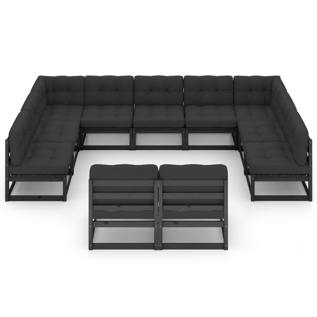 11 kom. Vrtna garnitura za sjedenje s jastucima od punog crnog bora