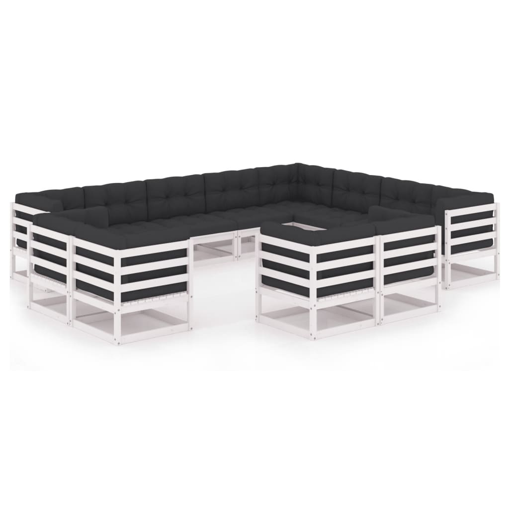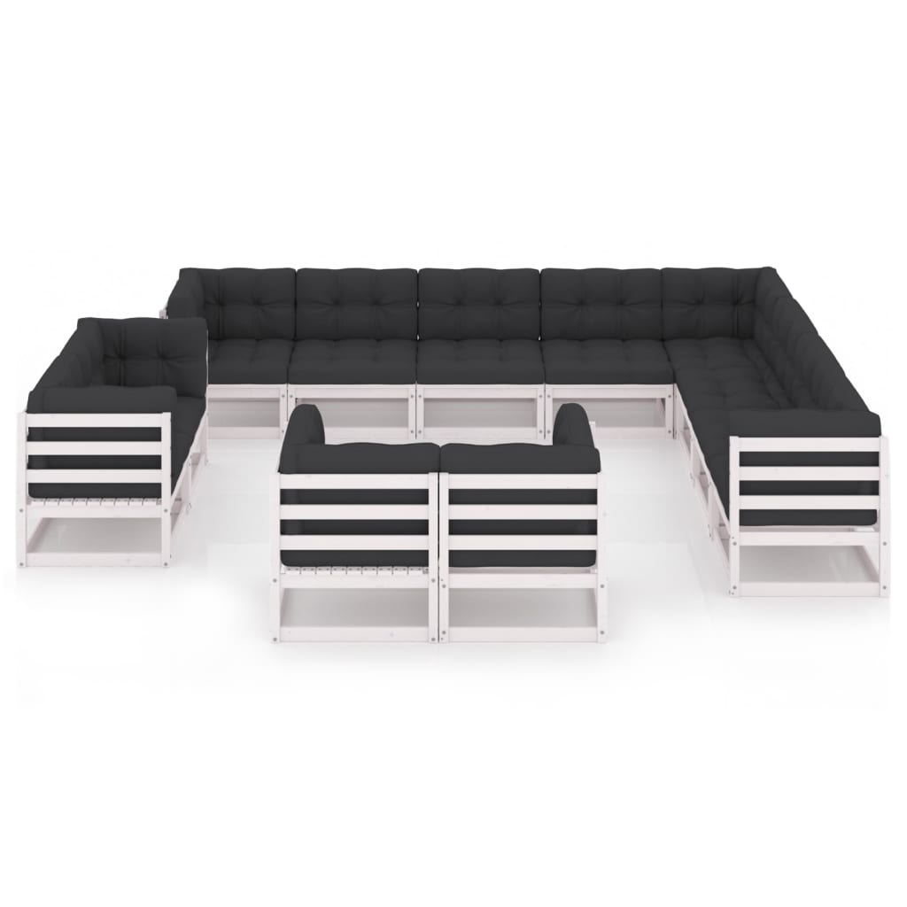 12 kom. Vrtna garnitura za sjedenje s jastucima od bijelog punog bora