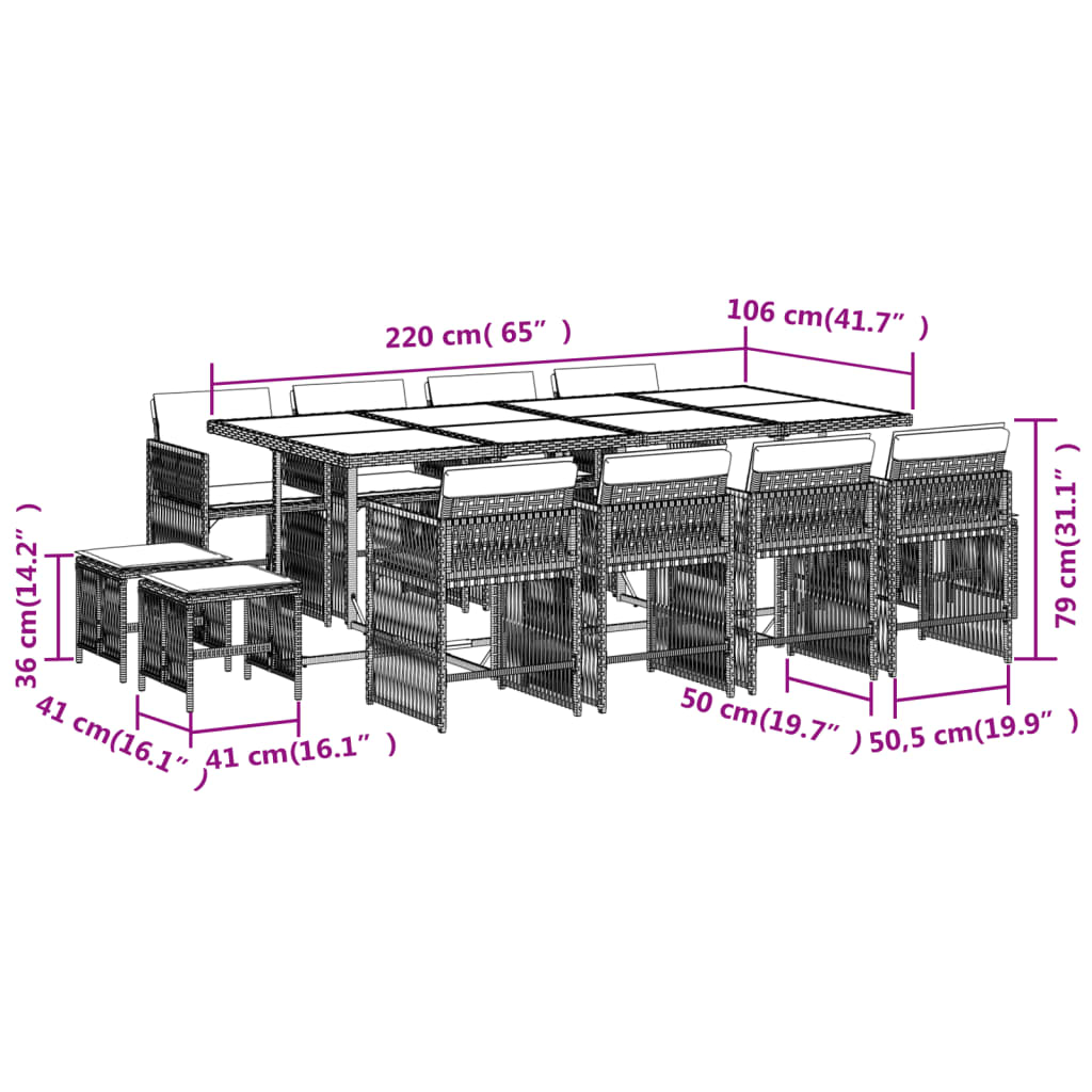 13-tlg. Garten-Essgruppe mit Kissen Schwarz Poly Rattan