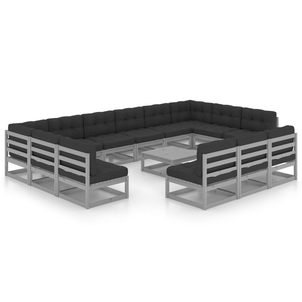 14 kom. Vrtna garnitura za sjedenje s jastucima Siva masivna borovina