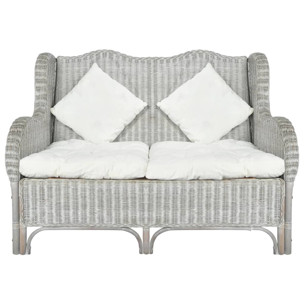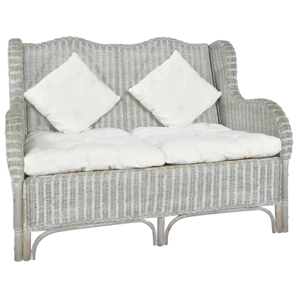 Sofa 2 sjedala sivi prirodni ratan i lan