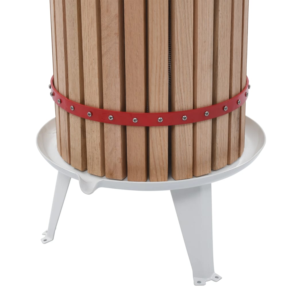 Uživajte u svježe cijeđenom soku kod kuće uz naš set sokovnika! S ovim kompletom za prešanje voća i vina koji je jednostavan za korištenje, možete bez napora cijediti vlastite sokove za vino i jabukovaču! Preša je savršena za grožđe, bobičasto i drugo voće. Mlinac je nezamjenjiv za sjeckanje jabuka, krušaka, breskvi, ananasa i drugog tvrdog voća. Set karakterizira jednostavno rukovanje od strane jedne osobe: jednostavno ulijte voće i okrenite ručku! Masivna hrastova bačva preše ne zahtijeva održavanje, dok su armature od lijevanog željeza otporne na hrđu. Drvena košara stoji na postolju od čelika premazanog prahom s izljevom. Izrađen od čelika, mlin se odlikuje izdržljivošću i jednostavnim značajkama. Robusna konstrukcija osigurava da i preša i mlin mogu izdržati mnoge teške uporabe. Sastavljanje je jednostavno.