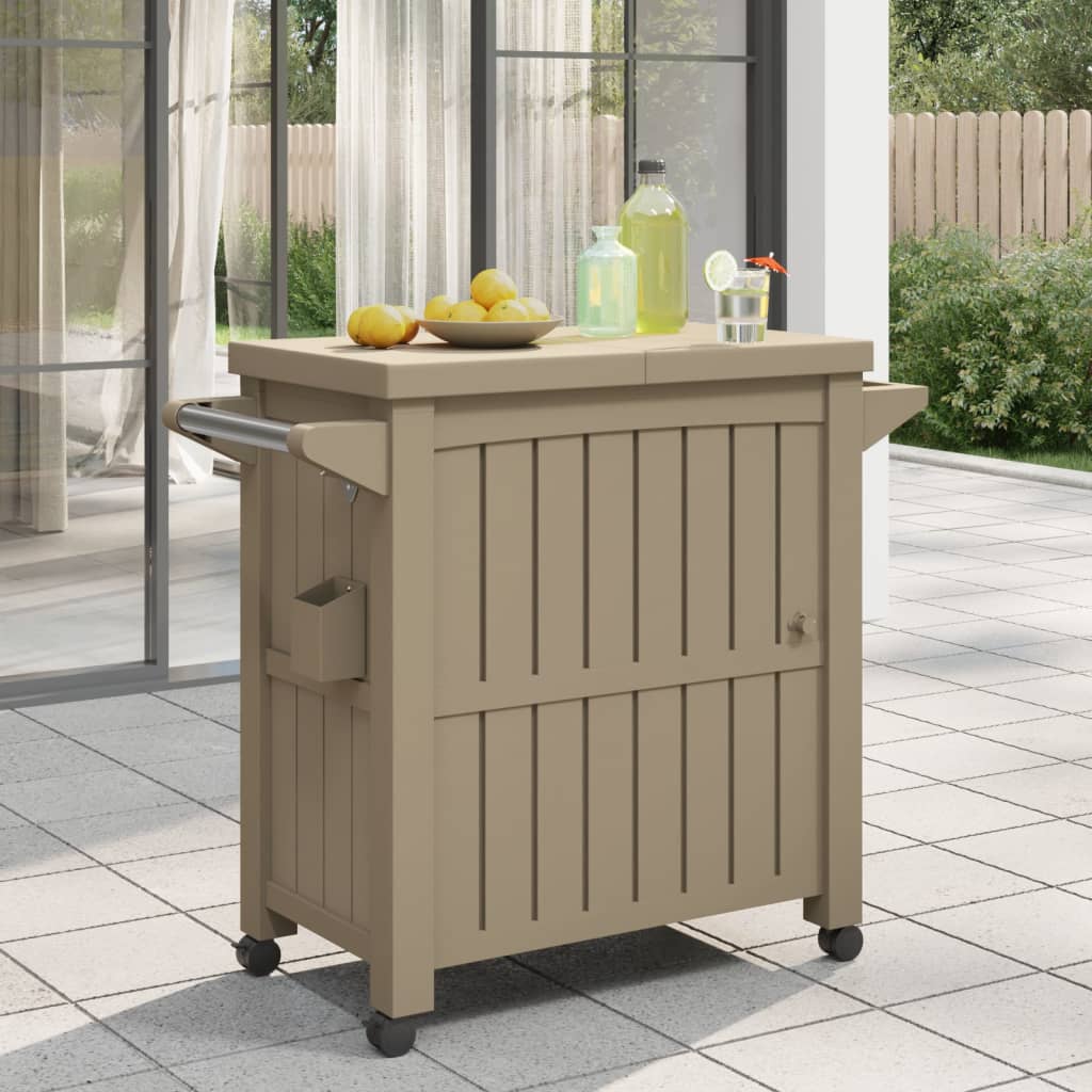 Ova kotrljajuća kolica imaju kantu za led od 80 litara, što ih čini idealnim za okupljanja na otvorenom. Također se može koristiti kao spremište ili pomoćni stol. Izdržljiv materijal: polipropilen (PP) je popularna plastika koja se obično koristi u proizvodnji vanjskog namještaja. Ovaj materijal je lagan, robustan i otporan na udarce. Zahvaljujući otpornosti na UV zračenje i vremenske uvjete, lako se čisti i održava. Funkcija 3-u-1: kolica za posluživanje s kotačima kombiniraju policu, prostor za pohranu i rashladnu kutiju u jednom. Ako posudu napunite ledom, pića će ostati hladna nekoliko sati. Kada su poklopci zatvoreni, gornja ploča može se koristiti kao praktična polica. Dizajn u stilu drva: sa svojim dizajnom u izgledu drveta, ovaj pokretni kuhinjski otok vašem vanjskom prostoru daje dašak prirodnosti. Praktičan dizajn: kolica za posluživanje imaju lak -poklopci na podizanje i bočna polica za začine, koji osiguravaju lak pristup napitcima i začinima. Ugrađeni otvarač za boce sa strane rashladne kutije olakšava otvaranje boca. Donji odjeljak pruža dodatni prostor za pohranu pića, tanjura, pribora za jelo, papirnatih ručnika itd. Jednostavan za transport: zahvaljujući 4 čvrsta kotača, kolica se mogu lako pomicati za posluživanje ledeno hladnih pića. Osim toga, 2 kotačića mogu se zaključati kako bi držala kolica za posluživanje na željenom mjestu. Vanjska odvodna cijev: zahvaljujući vanjskoj odvodnoj cijevi na stražnjoj strani, voda se može brzo ispustiti i kolica se mogu očistiti bez napora.