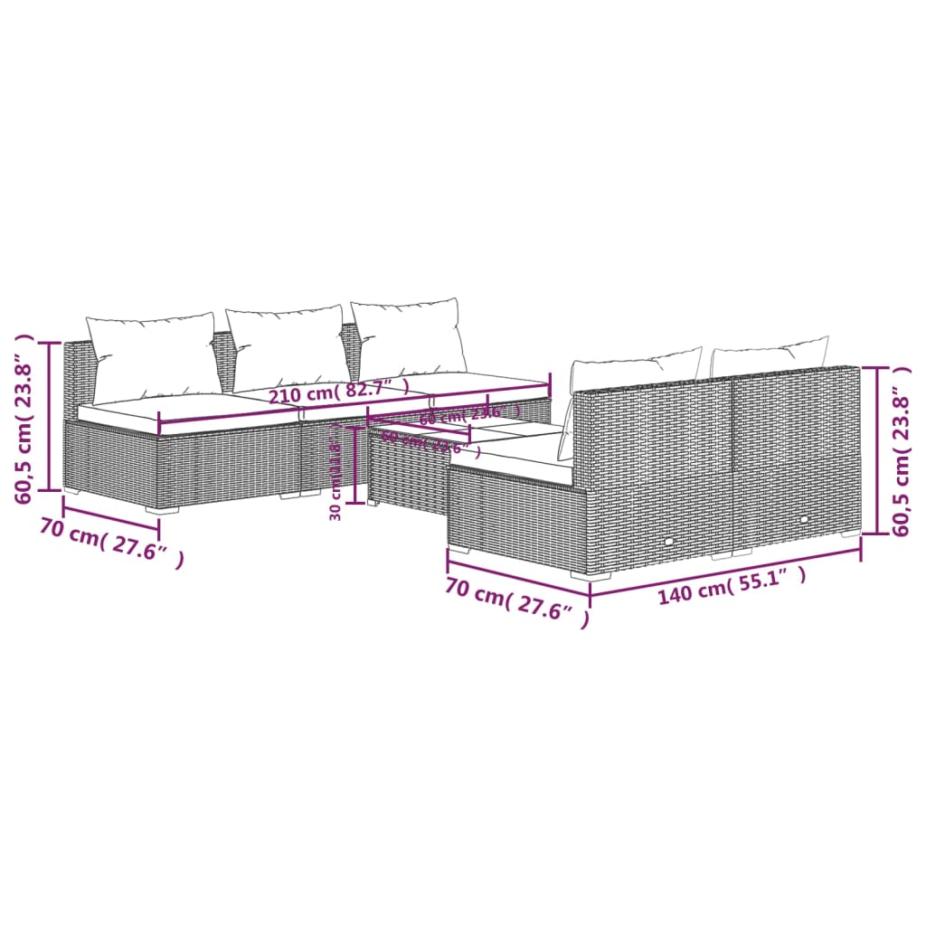 6-tlg. Garten-Lounge-Set mit Auflagen Poly Rattan Braun