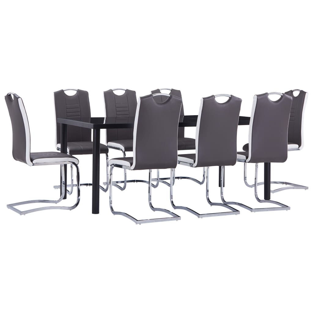Diese Essgruppe mit ihrem stilvollen und modernen Design fügt sich perfekt in Wohnungen, Essbereiche oder Restaurants ein. Das saubere und moderne Design passt zu jeder Inneneinrichtung. Der Tisch hat eine glatte Tischplatte aus gehärtetem Glas, die mit einem feuchten Tuch leicht zu reinigen ist. Das pulverbeschichtete Metallgestell trägt zu seiner soliden Konstruktion bei und sorgt für große Stabilität und Haltbarkeit. Die Stühle sind mit weichem Kunstleder bezogen und dick gepolstert, um maximalen Komfort zu bieten. Durch sein ergonomisches Design lädt der Esszimmerstuhl zum gemütlichen Sitzen ein. Dank des verchromten Stahlrahmens sind die Stühle sehr robust und stabil. Darüber hinaus sind die Esszimmerstühle mit einem Griff an der Rückenlehne ausgestattet und daher bequem und leicht zu bewegen. Diese Essgruppe ist einfach zusammenzubauen. Diese Essgruppe eignet sich ideal für eine Festmahl mit Familie und Freunden.