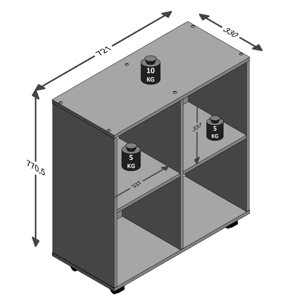 FMD polica na kotačima s 4 pretinca u izgledu hrasta