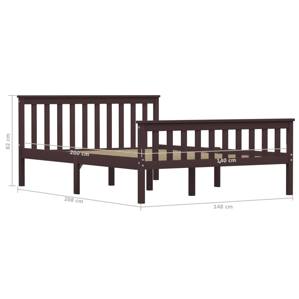 Krevet od punog drva tamno smeđi bor 140x200 cm