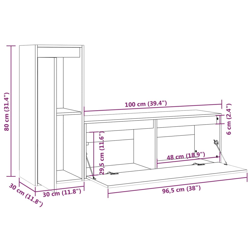 - 1 x TV-Schrank: 100 x 30 x 35 cm (B x T x H)