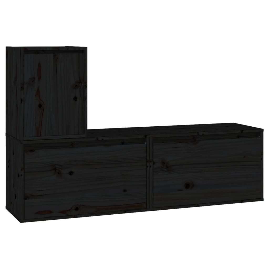 TV-Schränke 3 Stk. Schwarz Massivholz Kiefer