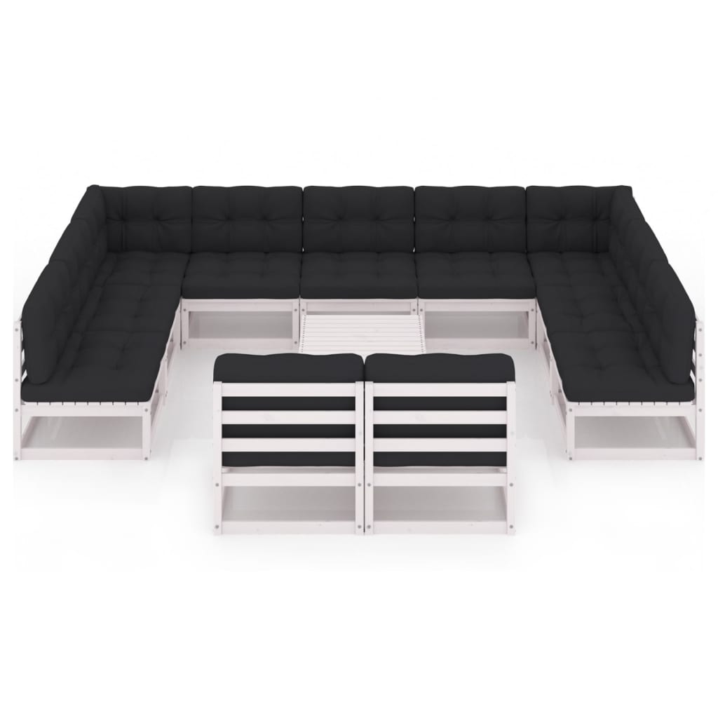 12-tlg. Garten-Lounge-Set mit Kissen Weiß Massivholz Kiefer